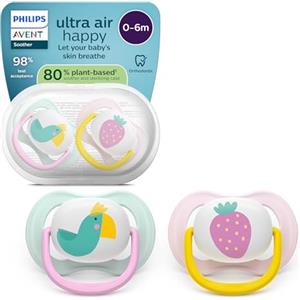 Philips Avent Succhietti Ultra Air - Design ortodontico, per neonati 0-6 mesi, in silicone morbido, senza BPA, set da 2 con custodia per sterilizzazione