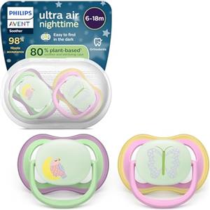 Philips Avent Succhietti Ultra Air Nighttime - Design ortodontico, per neonati 0-6 mesi, fluorescente, tettarella in silicone morbido, senza BPA, confezione da 2