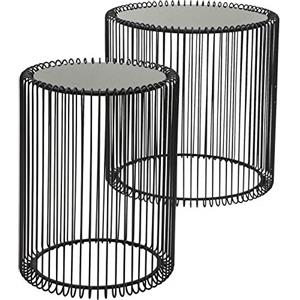 Kare Design Tavolino d'Appoggio Wire Nero - Set di 2 Pz con Piano in Vetro e Struttura in Acciaio, Dimensioni Ø39 e Ø27 cm