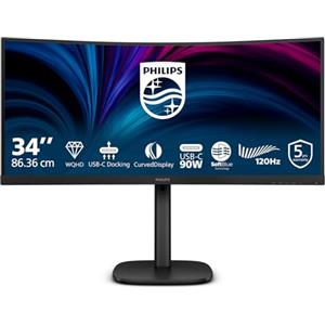 Philips 34B2U3600C/00 Monitor Curvo WQHD 34" 3440 x 1440 Pixel LCD, 120 Hz, HDMI, DisplayPort, USB-C, Altoparlanti Integrati, Altezza Regolabile, Nero