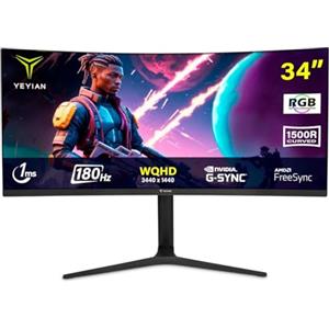 YEYIAN Proact FV234 - Monitor da gioco curvato 34" WQHD 180Hz, 1ms, FreeSync & G-Sync, 92% NTSC