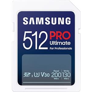 Samsung PRO Ultimate Scheda SD 512 GB, UHS-I U3, 200 MB/s lettura, 130 MB/s scrittura, compatibile con fotocamera, PC, drone e action cam, incl. lettore di schede USB