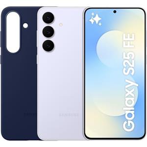 Samsung Galaxy S25 FE con Silicone Cover Dark Blue, Smartphone AI con 3 anni di Garanzia del produttore, RAM 8GB, 256GB, Icyblue