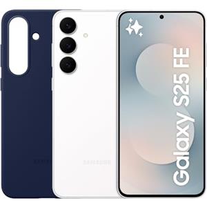 Samsung Galaxy S25 FE con Silicone Cover Dark Blue, Smartphone AI con 3 anni di Garanzia del produttore, RAM 8GB, 256GB, White