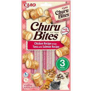 INABA Churu Bites Snack per Gatti - Pollo con Ripieno di Tonno e Salmone - 3 Stick da 10g - Morbido e Cremoso, Senza Conservanti