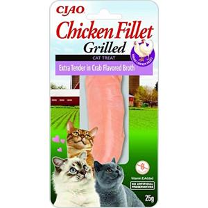 INABA Filetti di Pollo Grigliato per Gatti - Snack Extra-Teneri in Brodo al Gusto di Granchio, Ricchi di Antiossidanti e Senza Conservanti, 15g