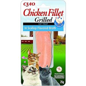 INABA Filetti di Pollo Grigliato per Gatti in Brodo di Capesante - Snack Grain-Free Ricco di Antiossidanti, 25g