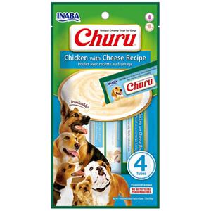 INABA Churu Snack Cremoso al Pollo e Formaggio - 4 Stick da 14g, Snack Morbido e Ipocalorico per Cani, Senza Conservanti e Coloranti
