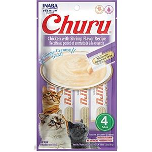 INABA Churu Snack Cremoso per Gatti al Pollo e Gamberetti - 4 Stick da 14g, Naturale e Senza Conservanti