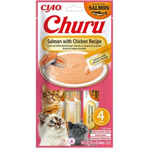 INABA Churu Snack per Gatti Cremoso al Salmone e Pollo - 4 Stick da 14g, Snack Sano e Delizioso, Senza Conservanti