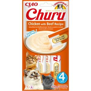 INABA Churu Snack Cremoso per Gatti al Pollo e Manzo - 4 Stick da 14g, Alimento Naturale e Idratante