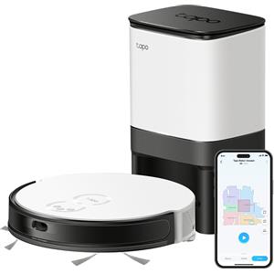 TP-Link Tapo RV20 Mop Plus - Robot Aspirapolvere e Lavapavimenti Smart con Svuotamento Automatico, Contenitore da 4 L, Nero e Bianco