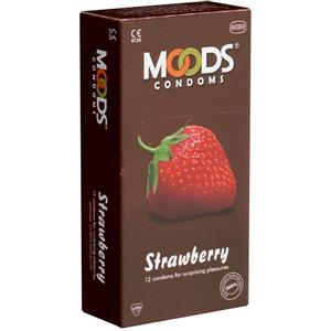 Moods Preservativi alla Fragola - 12 pz, Lattice Lubrificati con Serbatoio