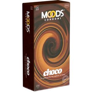 Moods Choco Condoms - 12 Preservativi al Gusto di Cioccolato, Lubrificati e Comestibili