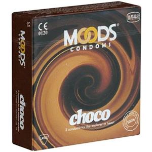 Moods Preservativi Choco - 3 pz, al gusto di cioccolato, lubrificati e con serbatoio