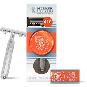 Merkur 9041001 - Rasoio di Sicurezza con Pettine Aperto, 76,2 mm, 60 gr, Include Lametta Merkur Super