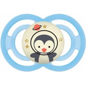 MAM Perfect Night Succhietto Doppio 16 Mesi in Silicone che Si Illumina al Buio con Porta Ciuccio - Azzurro