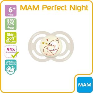 MAM Perfect Night Succhietto in Silicone Neutro 6 Mesi - Tettarella Flessibile e Luminoso