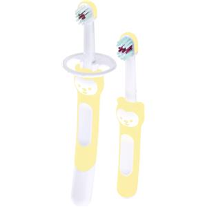 MAM Baby's Brush Box Doppia Neutro - Set di 2 Spazzolini per Bambini 6 Mesi con Setole Extra Morbide e Anello di Sicurezza