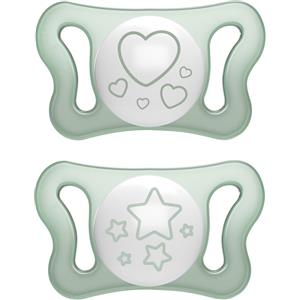 NUK Succhietto Signature Night in Silicone 0-6 mesi - 2 Pezzi, Tettina Ortodontica che si Illumina al Buio