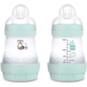 MAM Biberon Easy Start 160 ml, Biberon anticolica per allattamento misto che riduce le bolle d'aria e il rischio di coliche, Accessori neonati autosterilizzanti e con tettarella misura 1, Verde