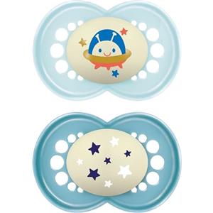 MAM Original Night Ciuccio Luminoso in Caucciù Naturale - Set da 2, 6 Mesi, con Custodia Porta Succhietto
