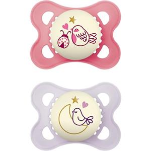 MAM Original Night Ciuccio Luminoso in Set da 2, Caucciù Naturale con Custodia, 2-6 Mesi, Rosa