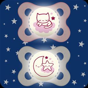 MAM Night Succhietto 2-6 Mesi in Silicone Doppio Neutro con Bottone Luminescente
