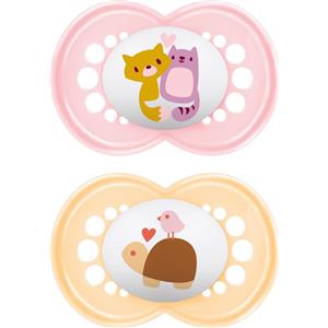 MAM Succhietto Original 16 Mesi in Caucciù Naturale Bio-Circolare - Set da 2 con Custodia Porta Succhietto Rosa