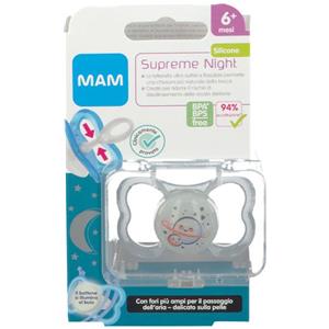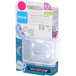 MAM Succhietto Supreme Night 6 Mesi in Silicone, Luminoso e con Custodia