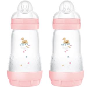MAM Biberon Easy Start 260 ml (Set da 2), Kit da 2 biberon anticolica per allattamento misto, Riduce le bolle d'aria e il rischio di coliche, Accessori neonati 2+ mesi con tettarella misura 2, Rosa