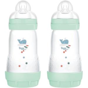 MAM - Confezione da 2 biberon Easy Start Anti-Colica 4+ mesi a flusso rapido (2 x 320 ml) Menta + Cotone - Biberon per ridurre le coliche e il disagio del bambino - Biberon per bambini compatibile con