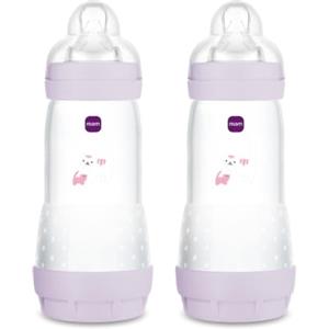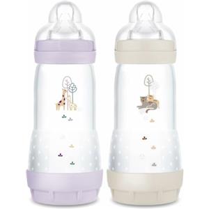 MAM Biberon Easy Start 320 ml (Set da 2), Kit da 2 biberon anticolica per allattamento, Riduce le bolle d'aria e il rischio di coliche, Accessori neonati 4+ mesi con tettarella misura 3, Rosa