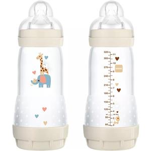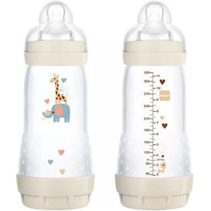 MAM Biberon Easy Start 320 ml (Set da 2), Kit da 2 biberon anticolica per allattamento, Riduce le bolle d'aria e il rischio di coliche, Accessori neonati 4+ mesi con tettarella misura 3, Verde