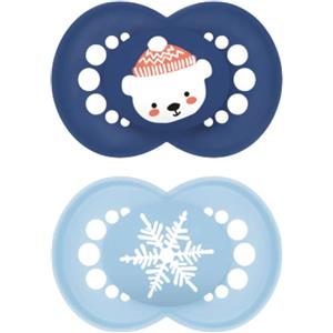 MAM Original Winter Limited Edition - Succhietto in Silicone 6 Mesi, Set da 2 con Porta Ciuccio Sterilizzatore, Azzurro