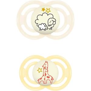 MAM Perfect Night Succhietto Doppio 2-6 Mesi con Bottone Luminoso e Porta Ciuccio