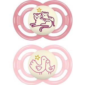 MAM Succhietto Perfect Night Rosa - Confezione Doppia 16 Mesi, Silicone che si Illumina al Buio con Porta Ciuccio