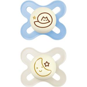 MAM Original Start Night - Set da 2 Succhietti Ortodontici in Silicone per Neonati 0-2 Mesi che Si Illuminano al Buio con Porta Ciuccio Sterilizzatore, Azzurro