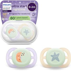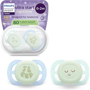 Philips Avent Ultra Start Nighttime - Succhietti ortodontici fluorescenti per neonati, in silicone morbido, senza BPA, confezione da 2