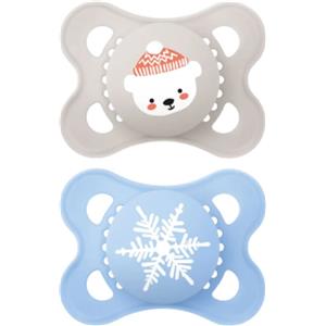 MAM Original Winter Limited Edition - Succhietto in Silicone 6 Mesi, Set da 2 con Porta Ciuccio Sterilizzatore, Azzurro