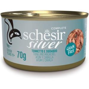 Schesir Silver Senior Cat Cibo Umido Tonno e Sgombro - Lattina da 70 g per Gatti dai 11 Anni