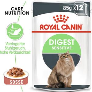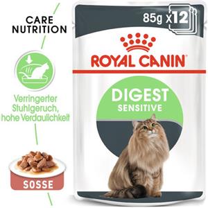 Royal Canin Digest Sensitive Wet Food | 12 x 85g | Alimento completo per gatti adulti | Può aiutare a ridurre l'odore delle feci | Bocconi in salsa