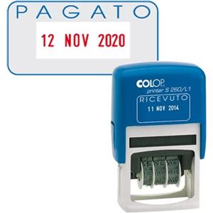 COLOP Timbro S260/L2 Datario Autoinchiostrante PAGATO 4mm Bicolore Blu/Rosso