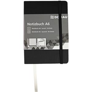 Donau Taccuino A6 Nero con 95 Fogli Quadretti, Copertina Morbida in Similpelle, Chiusura ad Elastico e Segnalibro