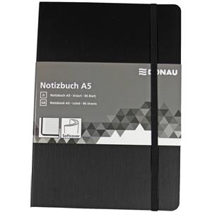 Donau Taccuino A6 Nero 95 Fogli Righe con Copertina Morbida e Chiusura ad Elastico