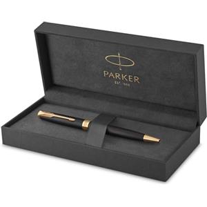PARKER Sonnet Penna a Sfera Nero Opaco con Finiture in Oro, Pennino Medio, Meccanismo a Scatto Retrattile, Confezione Regalo