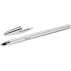 BIC Penna a sfera Cristal Shine Silver M 1 mm Nero - Design Elegante e Resistente
