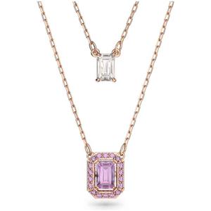 Swarovski Collana a fili fissi Millenia con Doppio Pendente e Pietre Taglio Ottagonale in Oro Rosa