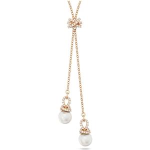Swarovski Collana Pendente a Y con Perle di Cristallo e Pavé di Zirconia, Placcatura in Oro Rosa, Lunghezza Regolabile