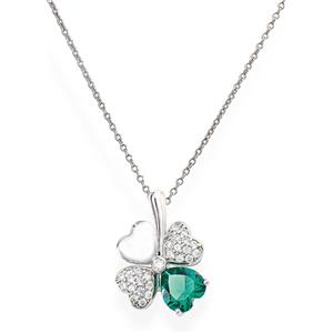Amen Collana Argento 925 con Pendente Quadricuore e Zirconi Bianchi e Verdi